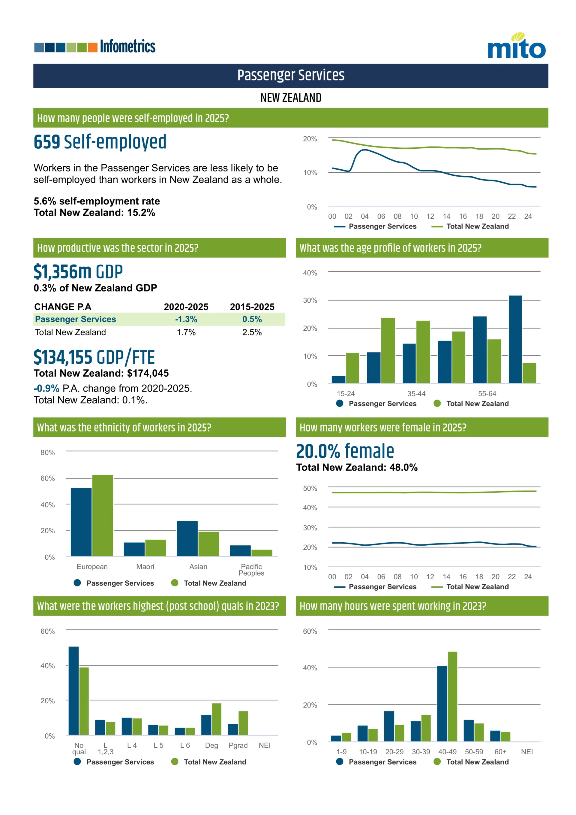 In 2025, 659 workers in passenger services were self‑employed, resulting in a 5.6% self‑employment rate.