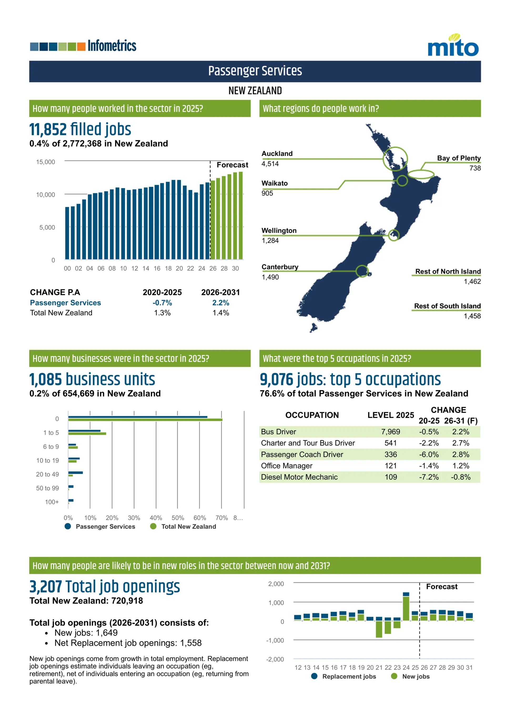 These reports were defined by MITO Limited. Data sourced from Infometrics and Statistics New Zealand.